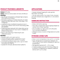• Ready to whip, Vanilla flavour icing, is a delicious creamy taste with dairy like flavour