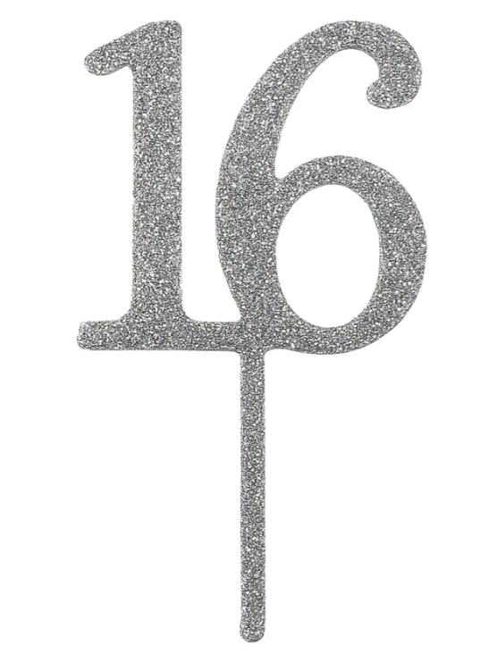 Number 16 Cupcake Topper - Silver Glitter - 8 Pcs