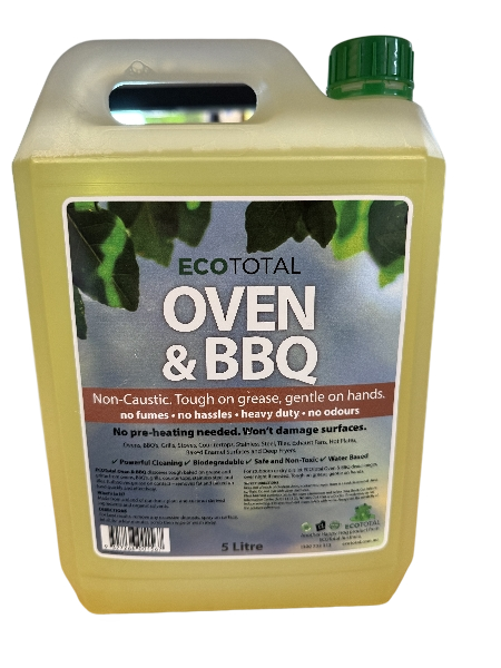 • ECOTotal’s Oven and BBQ Cleaner dissolves tough baked on grease and grime from ovens, BBQ’s, grills, countertops, stainless steel and tiles. It dissolves grease on contact – removes fat and baked on food quickly and effectively.